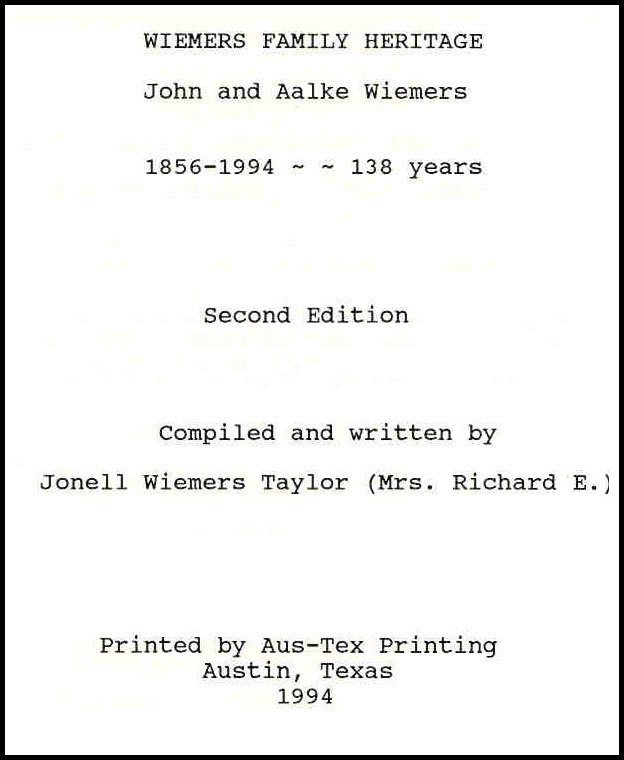 Wiemers Family Heritage Book: For information conta